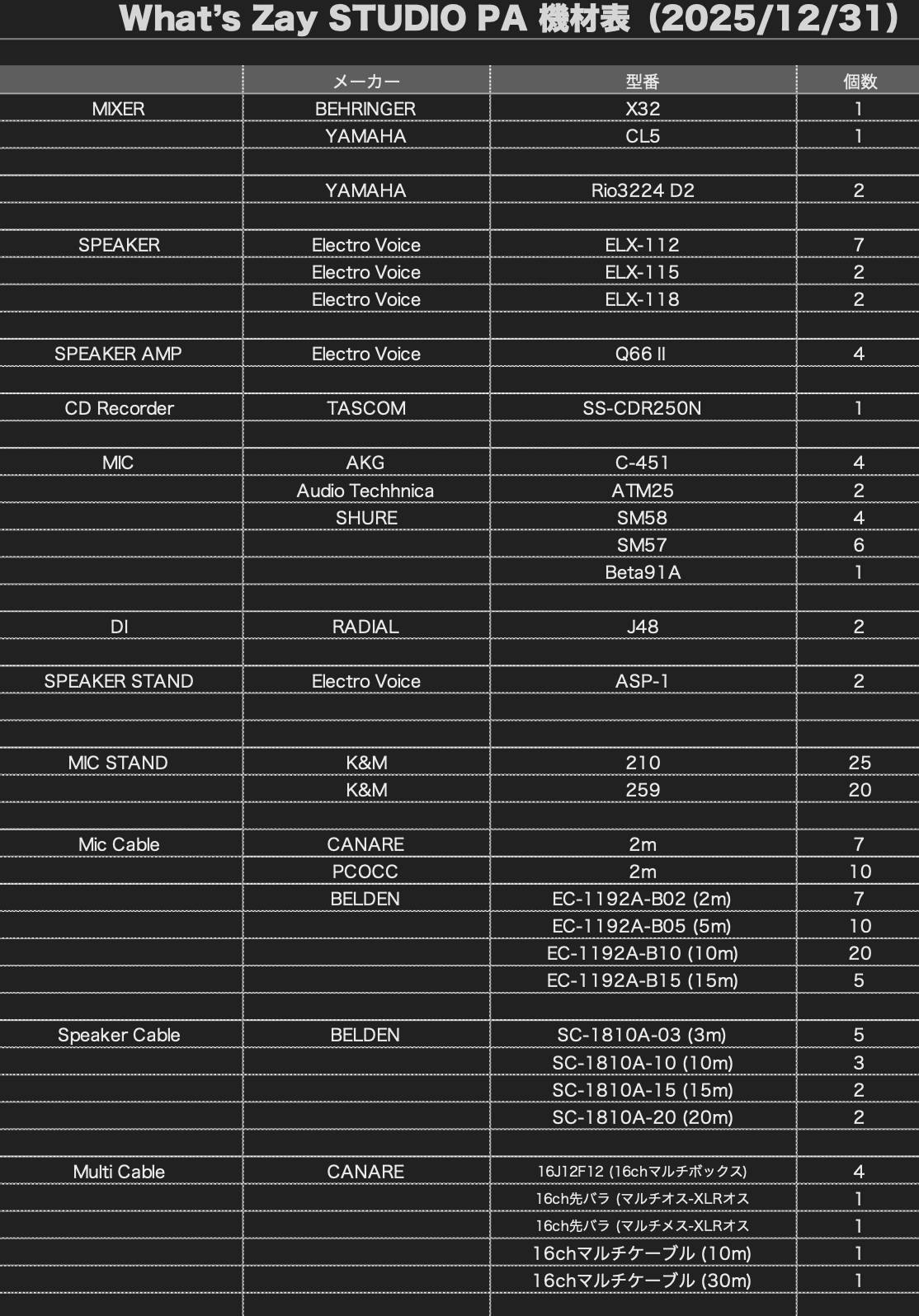 キャンセル料…当日/前日100%、2日前80%、3日前70%、6日前50% お支払いお願いします。